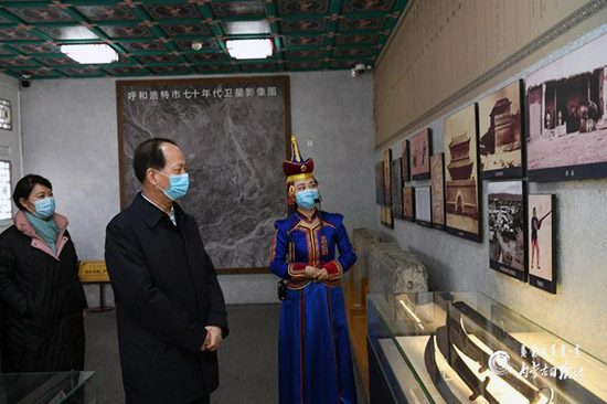 石泰峰參觀昭君博物院、將軍衙署博物院、內(nèi)蒙古博物院,考察大召文化旅游項(xiàng)目,查看疫情防控舉措,了解復(fù)館復(fù)業(yè)情況。他說,內(nèi)蒙古歷史文化源遠(yuǎn)流長、底蘊(yùn)深厚,具有獨(dú)特魅力和吸引力。要深入挖掘歷史文化內(nèi)涵,突出民族和地域特色,體現(xiàn)時(shí)代特征,促進(jìn)文化和旅游深度融合,推動(dòng)實(shí)現(xiàn)高質(zhì)量發(fā)展。要高度重視保護(hù)各類文物資源,發(fā)揮好文物承載燦爛文明、傳承歷史文化的重要作用。