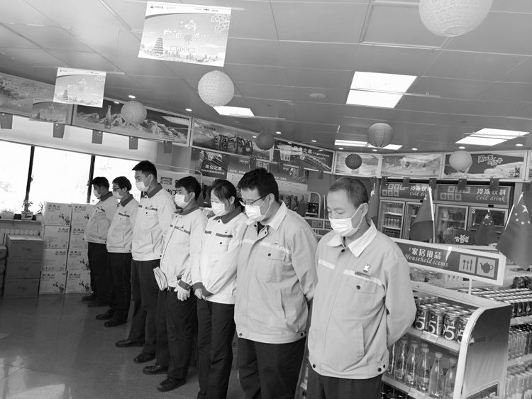 4月4日10時(shí),分公司機(jī)關(guān)、各區(qū)域和加油站有懸掛國(guó)旗的全部下半旗志哀,員工默哀3分鐘,在確保安全和正常經(jīng)營(yíng)秩序的前提下,部分加油站組織進(jìn)站車輛鳴笛志哀。