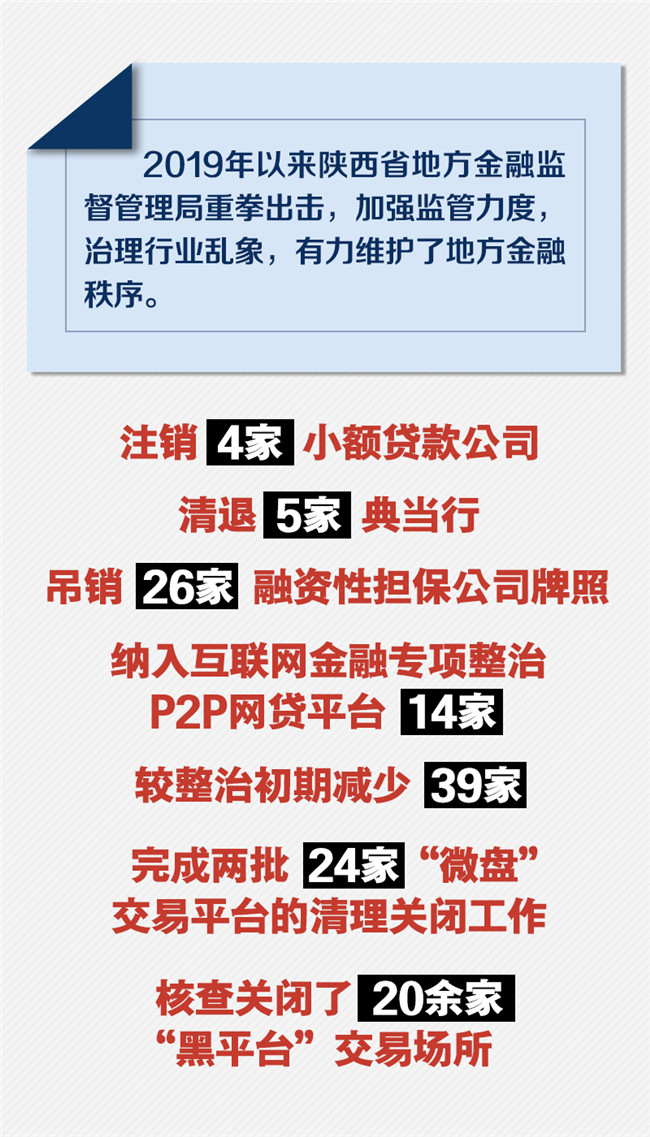 陜西省地方金融監(jiān)督管理局緊密?chē)@“一年打擊遏制、兩年深挖根治、三年長(zhǎng)效長(zhǎng)治”的要求,牽頭12家單位共同成立了全省地方金融領(lǐng)域掃黑除惡專(zhuān)項(xiàng)斗爭(zhēng)工作領(lǐng)導(dǎo)小組,全面負(fù)責(zé)推進(jìn)省地方金融領(lǐng)域掃黑除惡專(zhuān)項(xiàng)斗爭(zhēng)工作。