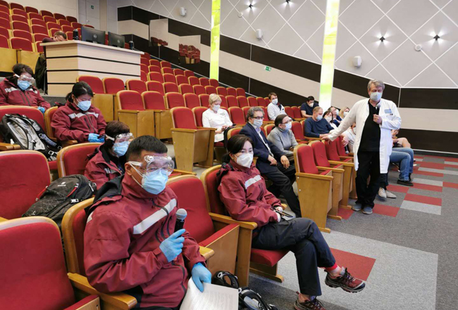 7天時(shí)間專家們已經(jīng)在當(dāng)?shù)氐?家醫(yī)院與醫(yī)學(xué)界同仁分享了經(jīng)驗(yàn),還通過(guò)視頻連線向在俄華僑華人、中資企業(yè)和留學(xué)生代表講解新冠防控科普知識(shí),解答相關(guān)問(wèn)題,并交接了防疫物資。