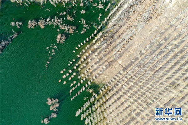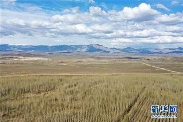 近年來,新疆阿勒泰市利用經(jīng)污水處理廠處理達(dá)標(biāo)后的中水,灌溉建在戈壁灘上的苗圃基地,形成良性循環(huán),助力綠化工程,改善生態(tài)環(huán)境。從2017年至今,阿勒泰市中水回用環(huán)境治理示范園已為當(dāng)?shù)鼐G化工程提供40萬株樹苗,實現(xiàn)5000畝荒山綠化。新華社記者丁磊攝