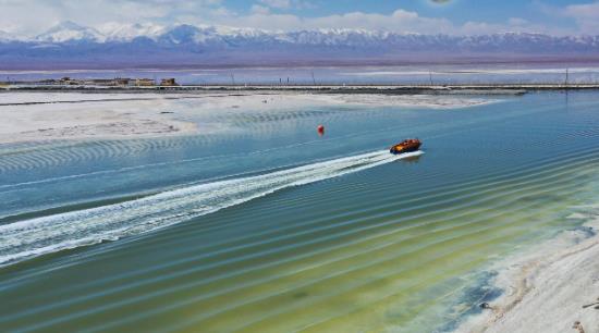 遠(yuǎn)處人工鹵水運(yùn)河上轟鳴聲陣陣,鹽湖游輪破風(fēng)而來(lái),掀起一波波潔白的浪花,在陽(yáng)光的照射下金光閃爍。乘坐游船航行在鹵水人工運(yùn)河上可以直觀體驗(yàn)工業(yè)遺風(fēng),欣賞全機(jī)械化的船采船運(yùn),感受茶卡鹽湖鹽業(yè)開采的滄桑巨變,是“原生態(tài)的鹽湖工業(yè)活景觀”。