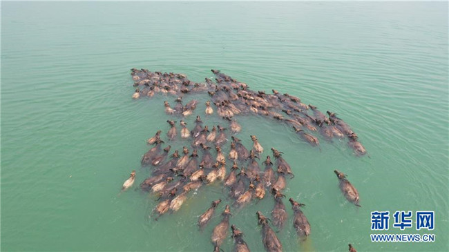 當(dāng)日,在四川南充市蓬安縣嘉陵江邊,上百頭水牛爭相渡江,上島吃草,當(dāng)?shù)氐?020年嘉陵江放牛季由此拉開帷幕。 每年四月到十月,在嘉陵江四川蓬安段,每日清晨,上百頭水牛渡江覓食,到夕陽西下時,牛兒游回來,形成“百牛渡江”的生態(tài)奇觀。近年來,蓬安縣利用這一獨(dú)特生態(tài)資源,大力發(fā)展鄉(xiāng)村旅游。