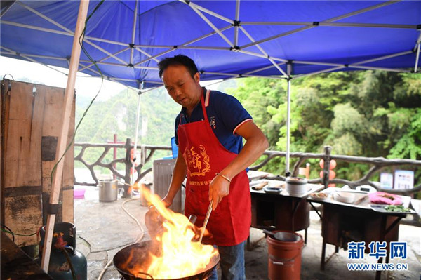 施六金在自家開的農(nóng)家樂為客人準(zhǔn)備午餐(4月25日攝)。1973年出生于十八洞村的施六金,由于父親患病很早就放棄學(xué)業(yè)和母親扛起了家庭的重?fù)?dān)。為了生活,他還曾遠(yuǎn)去東南亞打工。2015年,看到家鄉(xiāng)的變化,施六金回到村里開起了農(nóng)家樂,年度家庭人均純收入也從2014年的1715元增長(zhǎng)到了2019年的35696元。2018年,施六金與心愛的人組建了家庭。今年初,施六金與愛人迎來了一個(gè)大胖小子。“做人做事要懂得回報(bào)和感恩。”施六金給剛出生的兒子取名施澤恩。新華社記者薛宇舸攝