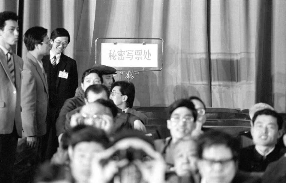 1988年4月,七屆全國人大一次會議第六次全體會議,投票選舉國家機構(gòu)領導人。圖為首次設立的秘密寫票處。