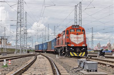 一列滿(mǎn)載貨物的中歐班列緩緩駛出滿(mǎn)洲里站。 記者 懷特烏勒斯 攝