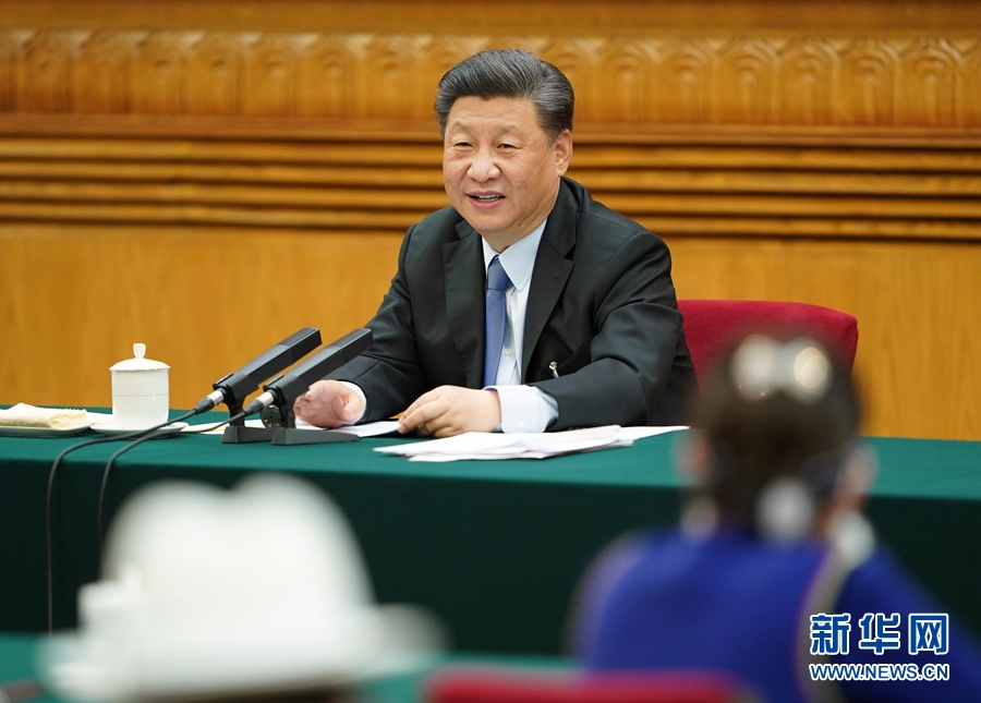 5月22日,中共中央總書記、國家主席、中央軍委主席習(xí)近平參加十三屆全國人大三次會議內(nèi)蒙古代表團(tuán)的審議。 新華社記者 鞠鵬 攝