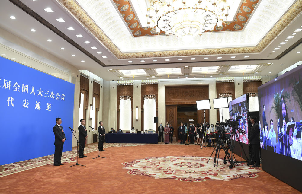 這是全國人大代表通過網(wǎng)絡(luò)視頻方式接受采訪。(新華社記者金良快 攝)