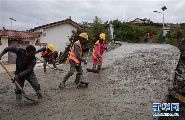 四川路橋公司的工人在金陽縣依達(dá)鄉(xiāng)保爾村對(duì)破損路面進(jìn)行整治(6月5日攝)。坐落在金沙江畔的四川省金陽縣是國(guó)家級(jí)深度貧困縣,境內(nèi)群山連綿起伏,海拔落差大,眾多村寨處于高山或者高半山上,道路施工難度大。近年來,當(dāng)?shù)卣畬⒔煌ㄗ鳛槊撠毠?jiān)的先導(dǎo)性工程,路越修越寬、越修越好,成為當(dāng)?shù)厝罕姷拿撠氈赂宦?。截?019年底,金陽縣實(shí)現(xiàn)所有鄉(xiāng)鎮(zhèn)通油路、建制村通硬化路,鄉(xiāng)道里程達(dá)329.9公里,村道里程達(dá)866.8公里。新華社記者江宏景攝