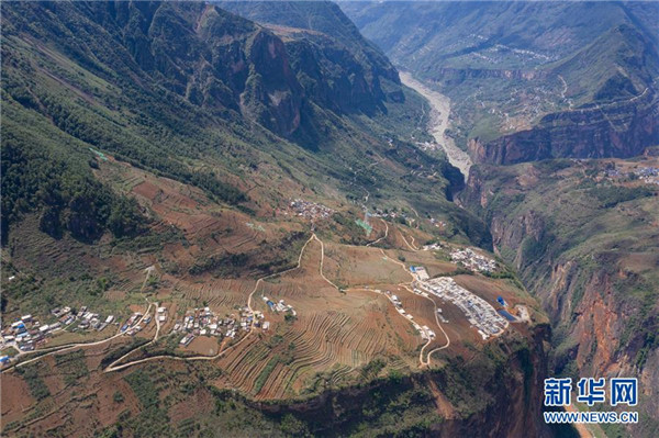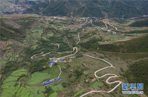 金陽縣天地壩鎮(zhèn)通往吉史里口村易地扶貧搬遷集中安置點(diǎn)的道路(6月7日攝,無人機(jī)照片)。坐落在金沙江畔的四川省金陽縣是國(guó)家級(jí)深度貧困縣,境內(nèi)群山連綿起伏,海拔落差大,眾多村寨處于高山或者高半山上,道路施工難度大。近年來,當(dāng)?shù)卣畬⒔煌ㄗ鳛槊撠毠?jiān)的先導(dǎo)性工程,路越修越寬、越修越好,成為當(dāng)?shù)厝罕姷拿撠氈赂宦贰=刂?019年底,金陽縣實(shí)現(xiàn)所有鄉(xiāng)鎮(zhèn)通油路、建制村通硬化路,鄉(xiāng)道里程達(dá)329.9公里,村道里程達(dá)866.8公里。新華社記者江宏景攝