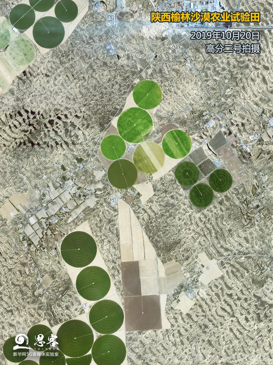 ▲圖為衛(wèi)星拍攝的陜西榆林沙漠農(nóng)業(yè)試驗田。衛(wèi)星數(shù)據(jù)來源:高分二號