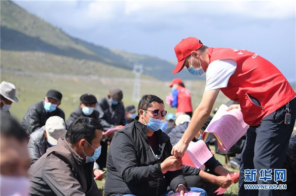 6月20日,新疆阿勒泰地區(qū)布爾津縣也格孜托別鄉(xiāng)克孜勒托蓋村村醫(yī)哈納提別克·沙旦在布爾津縣阿貢蓋提草原向參加該鄉(xiāng)牧業(yè)會議的牧民發(fā)放醫(yī)療宣傳資料。圍繞實現(xiàn)人人享有基本醫(yī)療衛(wèi)生服務目標,2016年起,新疆布爾津縣開展家庭醫(yī)生簽約服務工作。該縣組建家庭醫(yī)生簽約團隊65個,團隊醫(yī)務人員233名,通過手機APP、基本公衛(wèi)系統(tǒng)與全縣建檔立卡貧困戶進行電子化簽約,提升村醫(yī)隨訪的工作效率和質量。截至目前,已完成簽約42936人,履約40043人。新華社記者沙達提攝