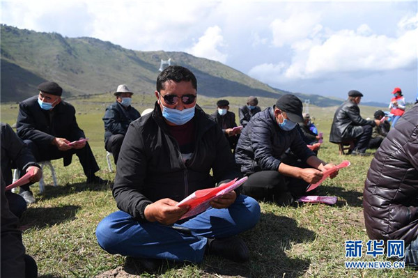 6月20日,在布爾津縣阿貢蓋提草原,牧民在看布爾津縣也格孜托別鄉(xiāng)克孜勒托蓋村家庭醫(yī)生簽約團隊發(fā)放的宣傳材料。圍繞實現(xiàn)人人享有基本醫(yī)療衛(wèi)生服務目標,2016年起,新疆布爾津縣開展家庭醫(yī)生簽約服務工作。該縣組建家庭醫(yī)生簽約團隊65個,團隊醫(yī)務人員233名,通過手機APP、基本公衛(wèi)系統(tǒng)與全縣建檔立卡貧困戶進行電子化簽約,提升村醫(yī)隨訪的工作效率和質量。截至目前,已完成簽約42936人,履約40043人。新華社記者沙達提攝