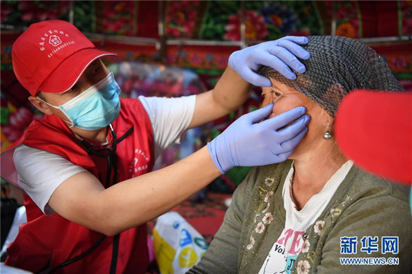 6月20日,新疆阿勒泰地區(qū)布爾津縣也格孜托別鄉(xiāng)克孜勒托蓋村村醫(yī)在布爾津縣黑流灘草原給牧民巴合提古麗·塔拉甫汗檢查身體。圍繞實現(xiàn)人人享有基本醫(yī)療衛(wèi)生服務目標,2016年起,新疆布爾津縣開展家庭醫(yī)生簽約服務工作。該縣組建家庭醫(yī)生簽約團隊65個,團隊醫(yī)務人員233名,通過手機APP、基本公衛(wèi)系統(tǒng)與全縣建檔立卡貧困戶進行電子化簽約,提升村醫(yī)隨訪的工作效率和質量。截至目前,已完成簽約42936人,履約40043人。新華社記者沙達提攝