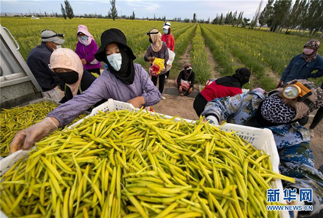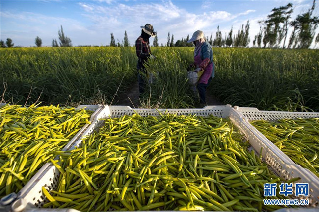 近日,寧夏鹽池縣惠安堡鎮(zhèn)的黃花菜進(jìn)入采摘季,從空中望去,成片的黃花菜地碧波萬(wàn)頃。近年來(lái),鹽池縣將黃花菜產(chǎn)業(yè)作為脫貧攻堅(jiān)的特色產(chǎn)業(yè),依托滴灌等技術(shù)擴(kuò)大種植規(guī)模,培育專業(yè)合作社、深加工企業(yè),打造黃花菜產(chǎn)業(yè)鏈條。目前,鹽池縣黃花菜種植面積達(dá)8.1萬(wàn)畝,產(chǎn)業(yè)年產(chǎn)值2.5億元,直接帶動(dòng)全縣3000多黃花菜種植戶戶均年增收2萬(wàn)多元。在黃花菜40多天的采摘期內(nèi),每天還可帶動(dòng)1.5萬(wàn)余人務(wù)工增收。