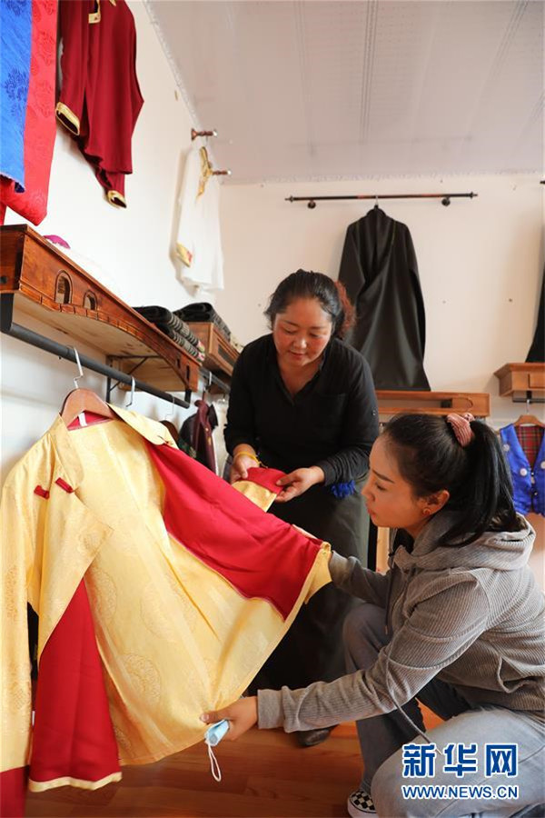 7月23日,在甘肅省甘南藏族自治州夏河縣??奇?zhèn)崗岔村的扶貧車間內(nèi),卓瑪吉(右)和扶貧車間負(fù)責(zé)人研究成衣款式。崗岔村是甘肅省甘南藏族自治州夏河縣??奇?zhèn)的一個牧業(yè)村,平均海拔3000米以上。2018年,在夏河縣文明辦工作的卓瑪吉開始擔(dān)任駐村幫扶工作隊隊長,每年都有200多天待在草原上。兩年來,卓瑪吉帶領(lǐng)大家開辦扶貧車間,發(fā)展特色產(chǎn)業(yè),聯(lián)系勞務(wù)輸出。為了讓村民更全面地了解精準(zhǔn)扶貧政策,卓瑪吉登門宣講政策。為了提高村容村貌,卓瑪吉發(fā)動大家開展廁所革命和庭院環(huán)境評比,積極響應(yīng)甘南藏族自治州“全域無垃圾”創(chuàng)建行動。她還從縣城請來醫(yī)生,為村民舉辦健康講座,在全村婦女中開展“兩癌篩查”。如今,崗岔村變成了干凈、整齊、富裕、美麗的生態(tài)文明村,提前實現(xiàn)了整村脫貧。談起心愿,卓瑪吉說:“要讓草原和草原上的人都變得更美。”新華社發(fā)(杜哲宇攝)