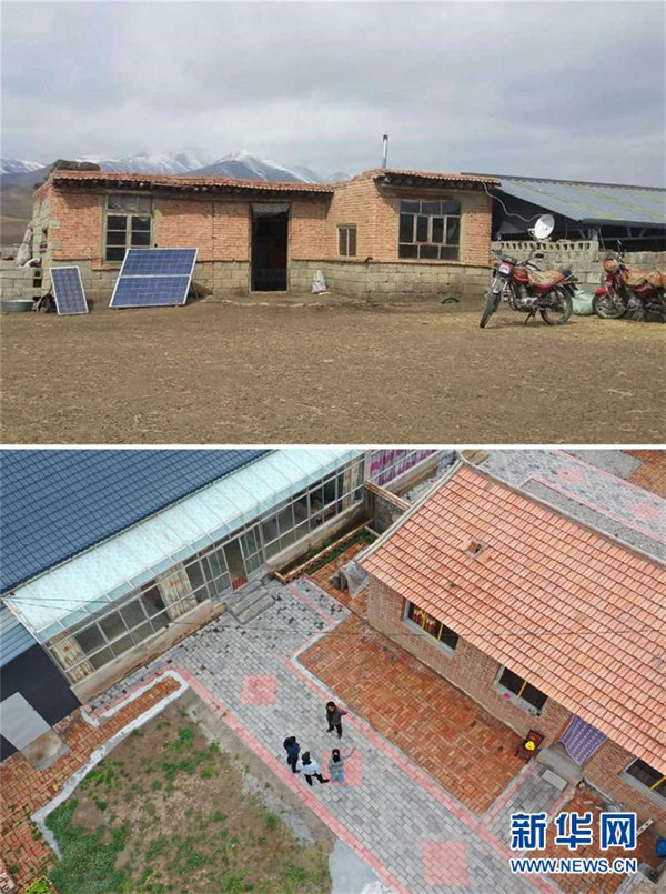 拼版照片:上圖為崗岔村村民才讓扎西在易地扶貧搬遷之前居住的房子(資料照片)。下圖為才讓扎西易地扶貧搬遷后的新家(7月23日攝,無人機(jī)照片)。新華社發(fā)(杜哲宇攝)崗岔村是甘肅省甘南藏族自治州夏河縣桑科鎮(zhèn)的一個牧業(yè)村,平均海拔3000米以上。2018年,在夏河縣文明辦工作的卓瑪吉開始擔(dān)任駐村幫扶工作隊隊長,每年都有200多天待在草原上。兩年來,卓瑪吉帶領(lǐng)大家開辦扶貧車間,發(fā)展特色產(chǎn)業(yè),聯(lián)系勞務(wù)輸出。為了讓村民更全面地了解精準(zhǔn)扶貧政策,卓瑪吉登門宣講政策。為了提高村容村貌,卓瑪吉發(fā)動大家開展廁所革命和庭院環(huán)境評比,積極響應(yīng)甘南藏族自治州“全域無垃圾”創(chuàng)建行動。她還從縣城請來醫(yī)生,為村民舉辦健康講座,在全村婦女中開展“兩癌篩查”。如今,崗岔村變成了干凈、整齊、富裕、美麗的生態(tài)文明村,提前實現(xiàn)了整村脫貧。談起心愿,卓瑪吉說:“要讓草原和草原上的人都變得更美。”新華社發(fā)