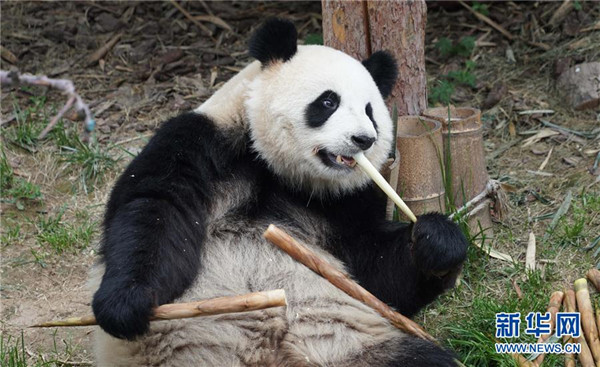 8月16日,大熊貓“園滿”在西寧熊貓館內(nèi)吃竹子。青海省西寧熊貓館的四只大熊貓已經(jīng)在西寧生活了一年多,在工作人員的悉心照顧下,已經(jīng)適應(yīng)了青藏高原的氣候,身體各項(xiàng)指標(biāo)正常。新華社記者耿輝凰攝