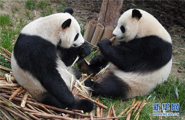8月16日,大熊貓“雙欣”在西寧熊貓館內(nèi)吃竹子。青海省西寧熊貓館的四只大熊貓已經(jīng)在西寧生活了一年多,在工作人員的悉心照顧下,已經(jīng)適應(yīng)了青藏高原的氣候,身體各項(xiàng)指標(biāo)正常。新華社記者薛玉斌攝