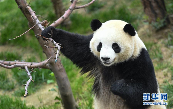 8月16日,大熊貓“園滿”在西寧熊貓館內(nèi)玩耍。青海省西寧熊貓館的四只大熊貓已經(jīng)在西寧生活了一年多,在工作人員的悉心照顧下,已經(jīng)適應(yīng)了青藏高原的氣候,身體各項(xiàng)指標(biāo)正常。新華社記者薛玉斌攝