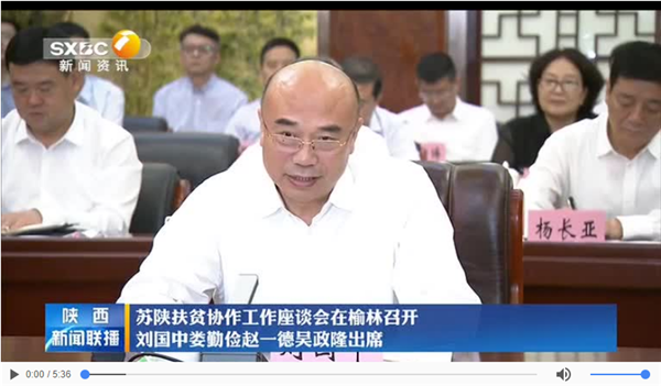 8月25日,江蘇省黨政代表團(tuán)來我省考察調(diào)研。26日上午,兩省在榆林召開蘇陜扶貧協(xié)作工作座談會(huì),深入貫徹落實(shí)習(xí)近平總書記關(guān)于扶貧工作的重要論述和來陜考察關(guān)于脫貧攻堅(jiān)的重要講話精神,交流兩省經(jīng)濟(jì)社會(huì)發(fā)展情況,共商加強(qiáng)蘇陜扶貧協(xié)作和經(jīng)濟(jì)合作舉措。