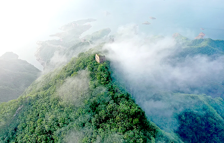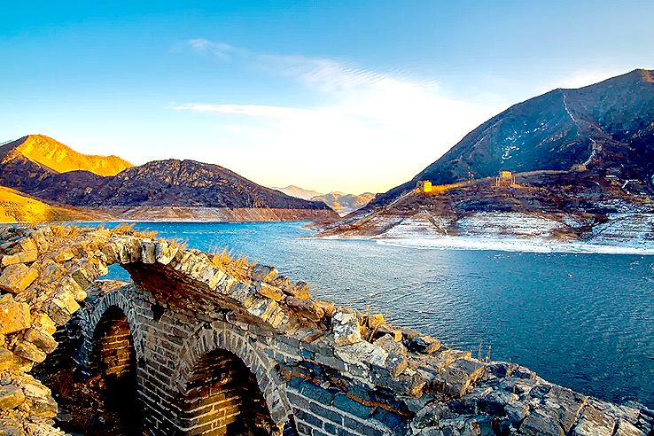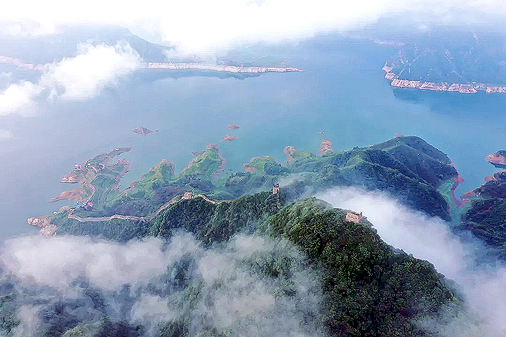 從空中俯瞰,長城順著逶迤的燕山山脈一直伸向水岸邊,猶如巨龍一頭扎進(jìn)水里。一座水庫的出現(xiàn),不經(jīng)意間營造了絕美的“長城水鄉(xiāng)”。