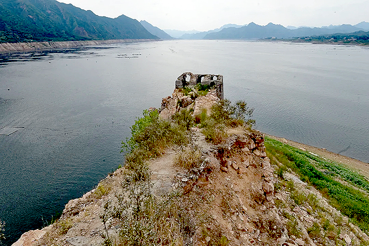 1975年至1981年,為了給天津供水,利用這里的山形地勢,在灤河上游寬城、遷西、興隆三縣交界處,修建了潘家口水庫。引灤入津工程橫切長城,喜峰口、潘家口兩座雄關(guān)鑲?cè)胍惶侗滩?,從而形成萬里長城一處絕景——“水下長城”。