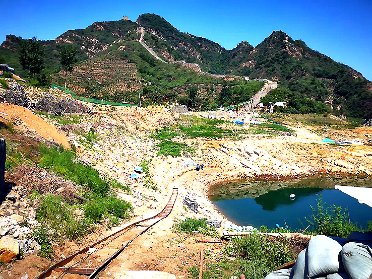 現(xiàn)場施工負(fù)責(zé)人杜勝軍說:“這段長城維修難點(diǎn)是運(yùn)輸,今年水位下降比較厲害,增加了運(yùn)輸難度。”