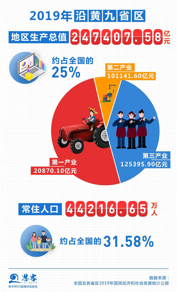 “平衡南北方,協(xié)同東中西”,黃河流域在我國經(jīng)濟(jì)社會發(fā)展中地位十分重要。流經(jīng)青海、四川、甘肅、寧夏、內(nèi)蒙古、陜西、山西、河南、山東9個(gè)省區(qū)的黃河,流域內(nèi)省份2019年底總?cè)丝?.42億,占全國的31.58%;地區(qū)生產(chǎn)總值24.74萬億元,約占全國25%。