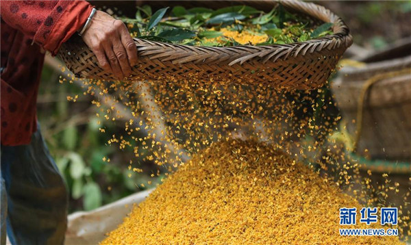 9月24日,四川省瀘州市江陽區(qū)鄰玉街道天堂村的村民在加工桂花。金秋時節(jié),四川省瀘州市江陽區(qū)鄰玉街道天堂村的村民們忙著打收桂花,制作桂花糕等美食,迎接中秋佳節(jié)的到來。新華社發(fā)(劉學懿攝)