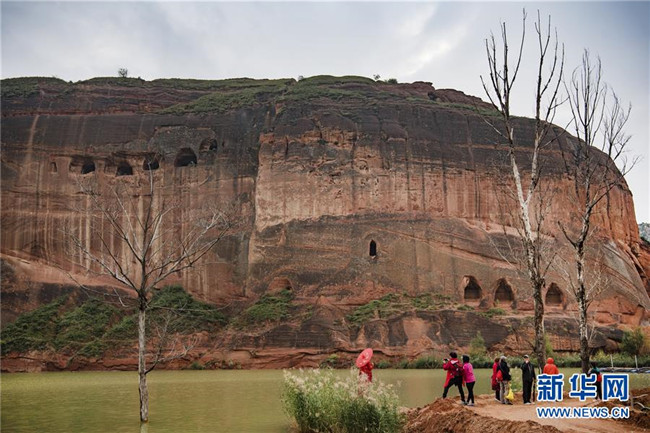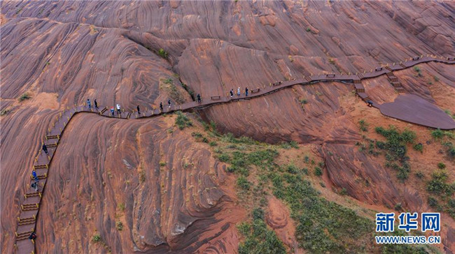 游人在靖邊縣龍洲鎮(zhèn)波浪谷丹霞景區(qū)游覽(9月26日攝)。新華社記者 陶明 攝