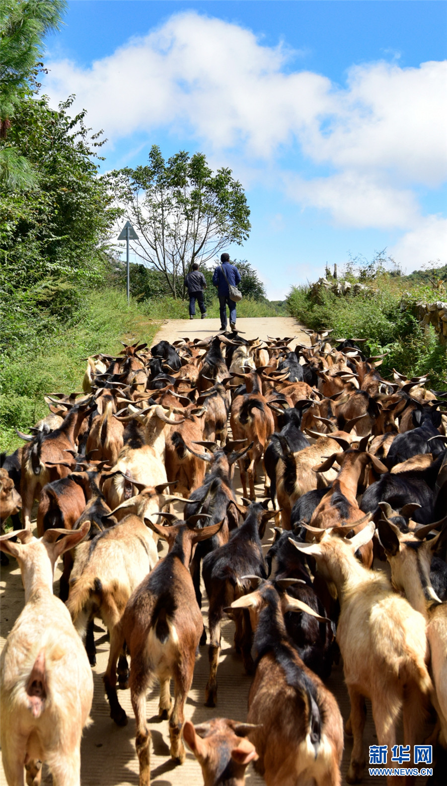 在云南省彌勒市東山鎮(zhèn)舍母村委會小橫山村,當?shù)乩蒙鷳B(tài)草場優(yōu)勢大力發(fā)展生態(tài)羊養(yǎng)殖,戶均養(yǎng)殖100多只,成為村民們的致富新手段。(10月11日攝)。新華網(wǎng)發(fā)(普佳勇 攝)