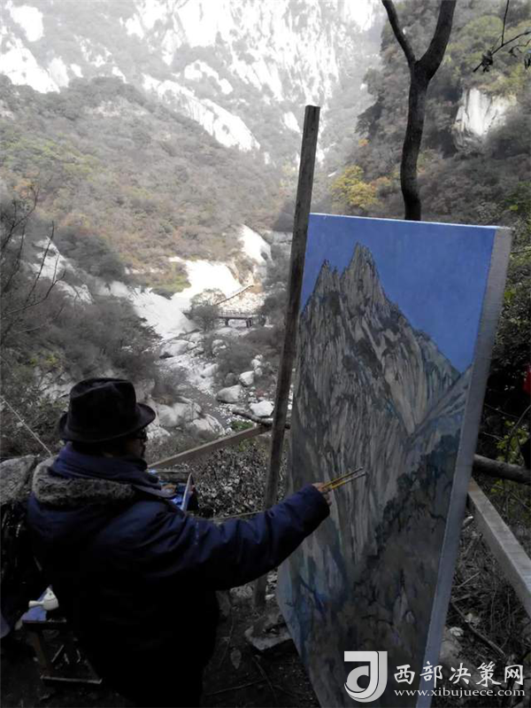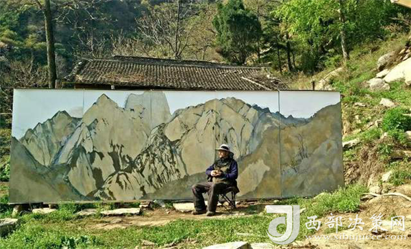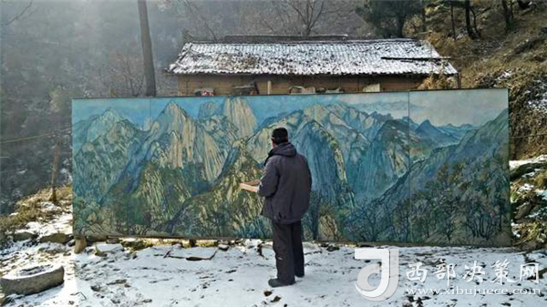 值得提起的是,田學森在華山十年,每幅畫都是在現(xiàn)場揮筆完成。美術界有些常用的省時省力的畫法,田學森都不喜歡去做。他喜歡與畫框共同經(jīng)歷自然環(huán)境的時間和空間,為千古華山寫照,表達對華山的感悟和敬意。他說,“華山是頂天立地的脊梁,我們每個人走的路,都是尋脈的過程。”