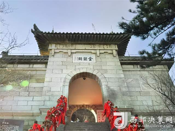 金鎖關(guān)是建在三峰口的一座城樓般石拱門,是經(jīng)五云峰通往東西南峰的咽喉要道,鎖關(guān)后則無(wú)路可通。杜甫《望岳》詩(shī)中“箭栝通天有一門”就是指的這里。道家認(rèn)為,華岳為仙鄉(xiāng)神府,只有過(guò)了通天門,才算進(jìn)入仙境。所以有“過(guò)了金鎖關(guān),另是一重天的”的民謠。