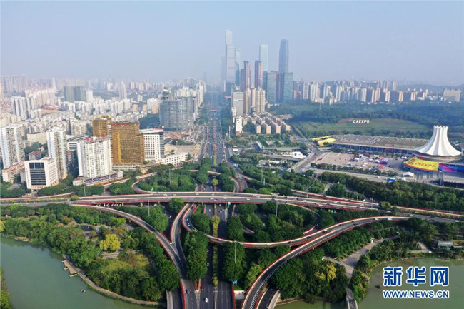 這是南寧國際會展中心及周邊建筑(11月26日攝,無人機(jī)照片)。新華社記者 陸波岸 攝