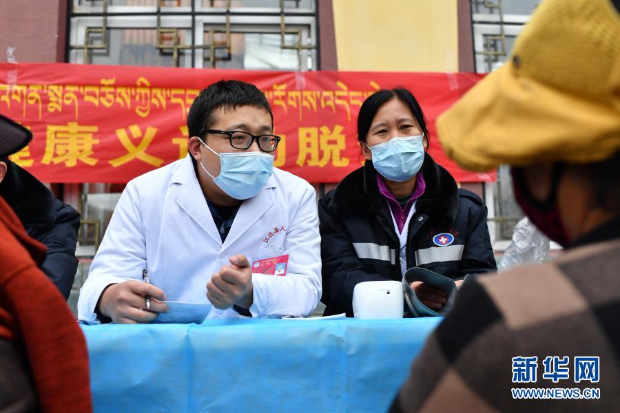 在西藏昌都市江達(dá)縣卡貢村,天津援藏醫(yī)生張宏(左)和李文茹為村民義診(9月26日攝)。新華社記者 詹彥 攝