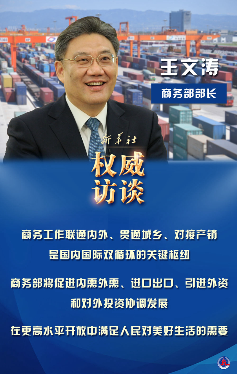 新的一年,促消費有何新招?如何繼續(xù)穩(wěn)住外貿(mào)外資基本盤?自貿(mào)區(qū)(港)建設(shè)有哪些新動作?自貿(mào)“朋友圈”如何構(gòu)建?新華社記者采訪了商務(wù)部部長王文濤。