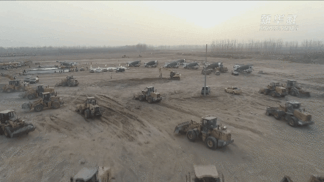 ▲1月14日石家莊市集中隔離點建設(shè)施工現(xiàn)場的挖掘機。圖片來源:新華社