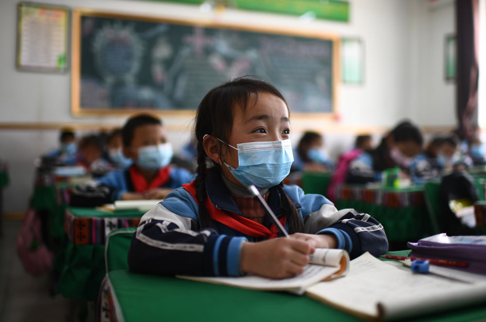 ↑ 在青海省玉樹藏族自治州八一孤兒學(xué)校,學(xué)生們?cè)谶M(jìn)行課間活動(dòng)(2020年4月3日攝)。 新華社記者 張龍 攝