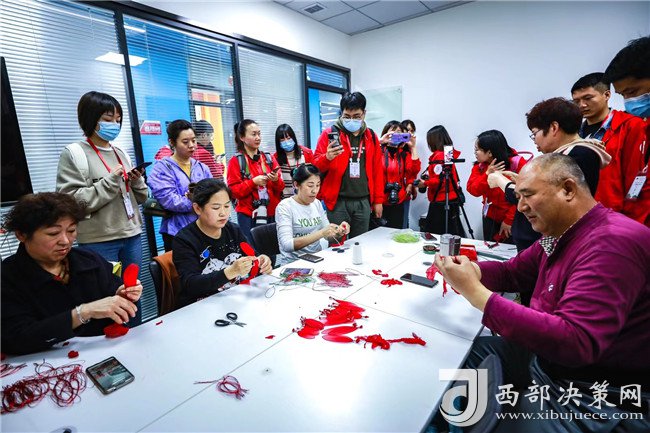 西部決策網(wǎng)訊 一折、一卷、六朵花瓣整齊羅列,細(xì)鐵絲緊緊繞圈固定,一朵火紅的手工花便成型了。“這個是我們的一些手工藝品,都是有延安特色的,如果你們想學(xué)的話,隨時來,我們這里免費(fèi)培訓(xùn)。”3月30日,在延安市寶塔區(qū)電商直播融合孵化服務(wù)中心的直播間里,60歲的退休工人董智玲正在直播間里給網(wǎng)友直播手工藝品制作,引來了眾多記者的圍觀。