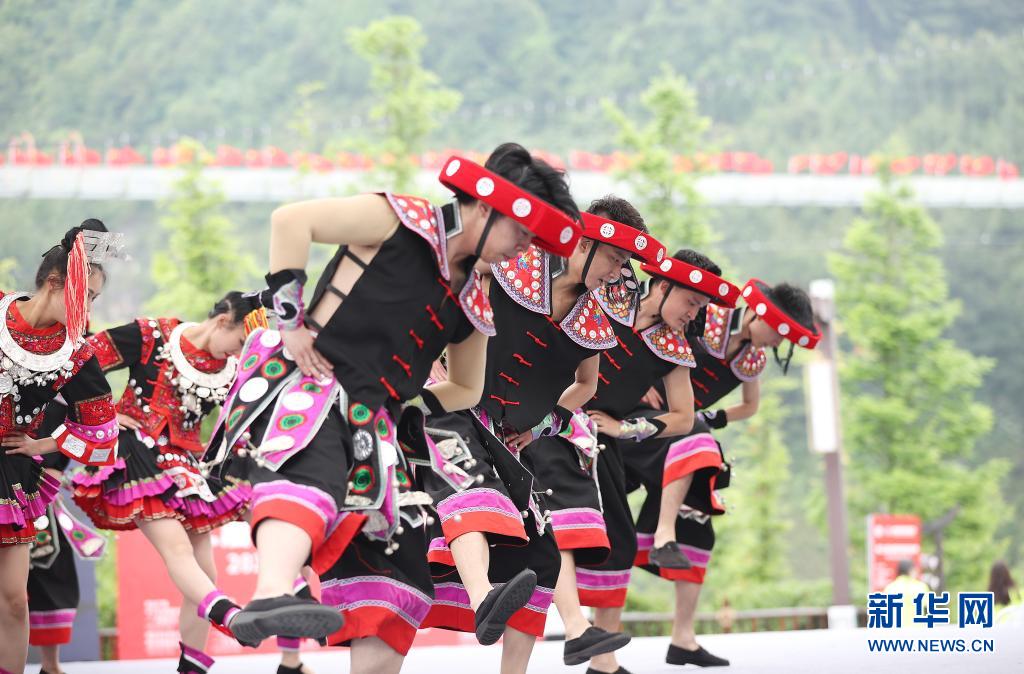 5月16日,演員在丹寨縣萬(wàn)達(dá)小鎮(zhèn)非遺歌舞展演活動(dòng)上表演苗族木鼓舞。新華社發(fā)(黃曉海 攝)