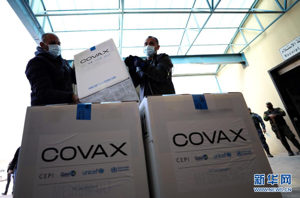 3月17日,在約旦河西岸城市納布盧斯附近的薩利姆鎮(zhèn),巴勒斯坦工作人員搬運(yùn)通過世界衛(wèi)生組織主導(dǎo)的“新冠肺炎疫苗實(shí)施計劃(COVAX)”收到的新冠疫苗。新華社發(fā)(艾曼·諾巴尼攝)