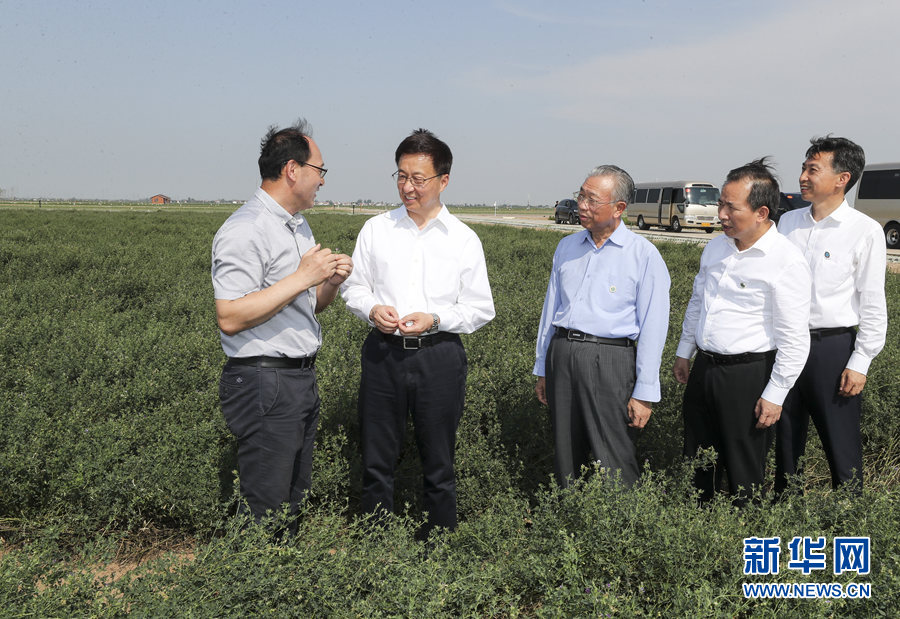 7月5日至6日,中共中央政治局常委、國務(wù)院副總理韓正先后在山東東營、濟(jì)南調(diào)研。這是7月5日,韓正在黃河三角洲現(xiàn)代農(nóng)業(yè)技術(shù)創(chuàng)新中心考察鹽堿地生態(tài)保護(hù)和綜合利用情況。新華社記者 姚大偉 攝