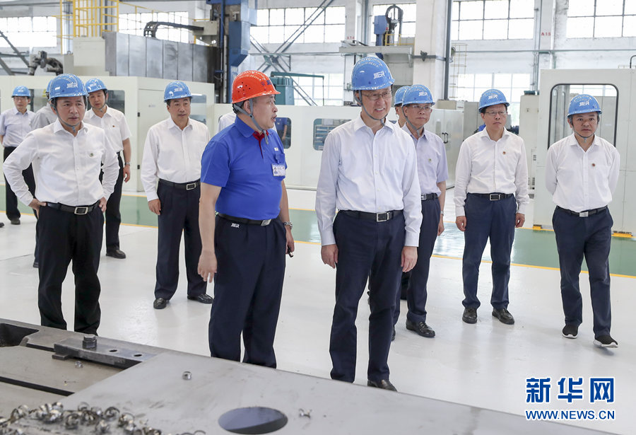 7月5日至6日,中共中央政治局常委、國務(wù)院副總理韓正先后在山東東營、濟(jì)南調(diào)研。這是7月6日,韓正在濟(jì)南二機床集團(tuán)有限公司考察企業(yè)生產(chǎn)運營和技術(shù)研發(fā)情況。新華社記者 姚大偉 攝