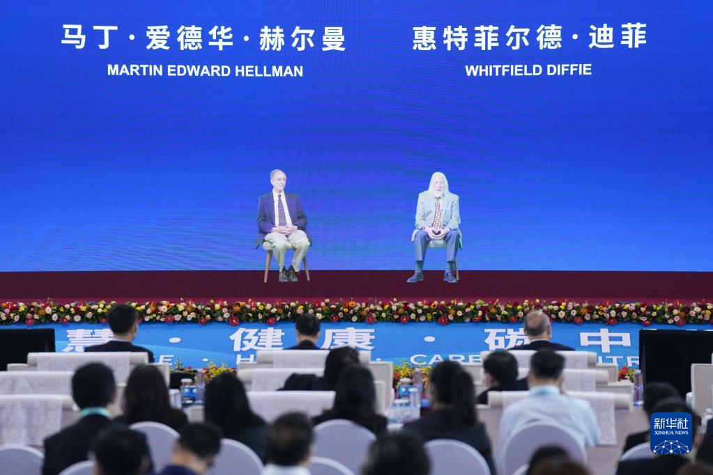 2015年圖靈獎共同得主馬丁·愛德華·赫爾曼(左)和惠特菲爾德·迪菲在2021中關(guān)村論壇全體會議上進(jìn)行視頻主題演講(9月25日攝)。新華社記者 鞠煥宗 攝