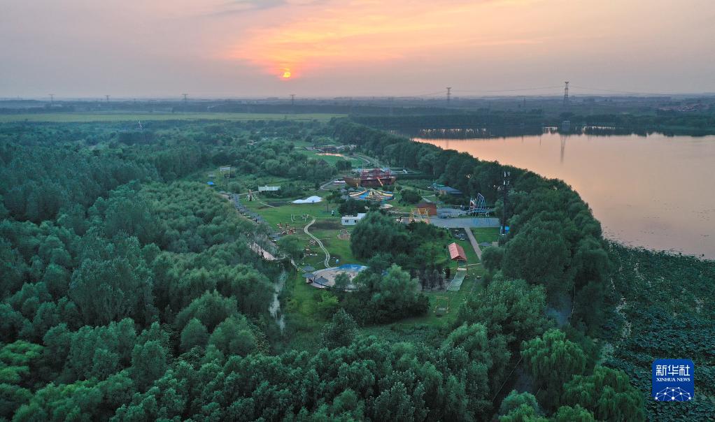 這是遼寧省鐵嶺蓮花湖國(guó)家濕地公園(8月23日攝,無(wú)人機(jī)照片)。 新華社記者 姚劍鋒 攝