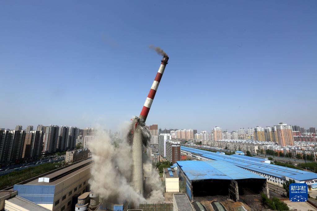 位于沈陽(yáng)市北一路的一座150米高大煙囪爆破成功(2014年4月28日攝)?!⌒氯A社記者 姚劍鋒 攝