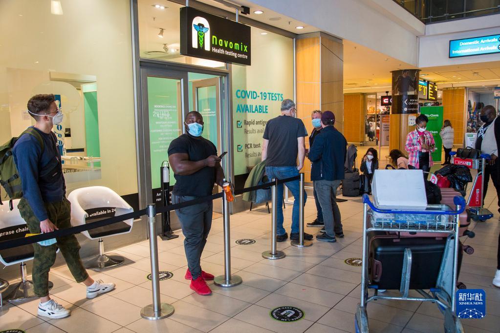 旅客在南非開(kāi)普敦國(guó)際機(jī)場(chǎng)等待接受新冠病毒檢測(cè)(2021年11月29日攝)。為防范新冠變異病毒奧密克戎毒株傳播,多國(guó)對(duì)南非等非洲國(guó)家的航班和旅客實(shí)施入境限制,并升級(jí)防控措施。新華社發(fā)(弗克攝)