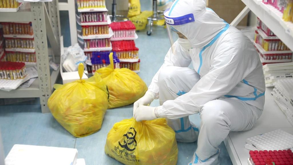 工作人員告訴記者,對(duì)于檢測后剩余的標(biāo)本,他們會(huì)嚴(yán)格按照醫(yī)療廢棄物品的相關(guān)規(guī)定進(jìn)行處理。比如,對(duì)于檢測呈陰性的標(biāo)本,會(huì)將其統(tǒng)一裝在黃色的垃圾袋中進(jìn)行消毒,并在垃圾袋上貼好警示封口,進(jìn)行高壓滅菌等一系列步驟后,送至下游公司進(jìn)行再處理。