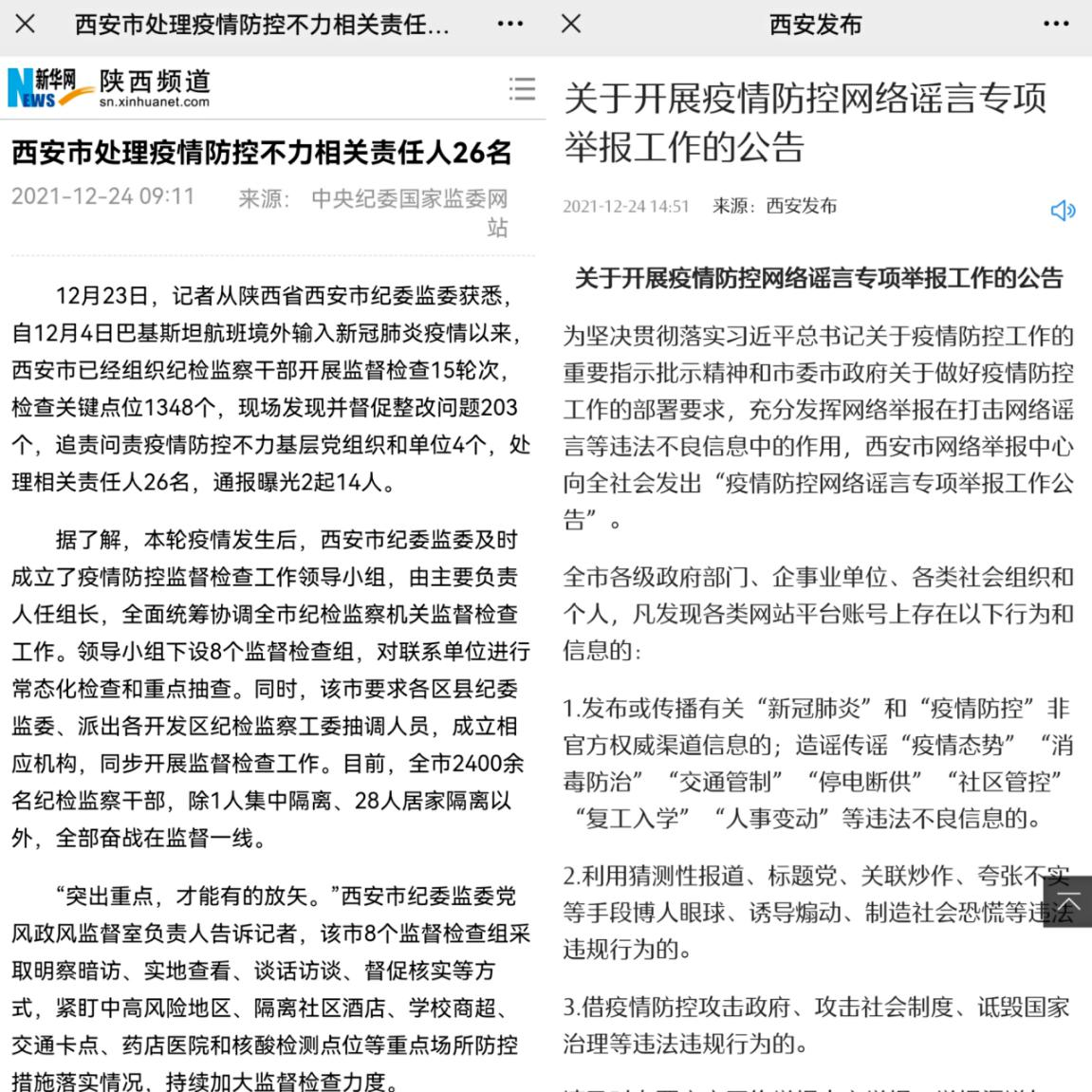 對在疫情防控工作中不擔(dān)當(dāng)、不作為,推諉扯皮、消極應(yīng)付等形式主義官僚主義問題,西安市嚴(yán)肅查處、精準(zhǔn)問責(zé)、及時曝光,進(jìn)一步嚴(yán)明疫情防控紀(jì)律,壓緊壓實(shí)各方責(zé)任。目前,西安市已經(jīng)組織紀(jì)檢監(jiān)察干部開展監(jiān)督檢查15輪次,檢查關(guān)鍵點(diǎn)位1348個,現(xiàn)場發(fā)現(xiàn)并督促整改問題203個,追責(zé)問責(zé)疫情防控不力基層黨組織和單位4個,處理相關(guān)責(zé)任人26名,通報曝光2起14人。